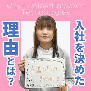 Point紹介ムービー 【オフィス環境】快適さ×創造性。エンジニアが輝くオフィスの裏側を公開! 【会社を一言で!】社員が語る「インフォコムテクノロジーズ」をひとことで。 【育児に役立つ制度】育児とキャリア、どちらも諦めない。その秘密の制度を紹介! 【会社の良い点】働く人が実感する“この会社のスゴさ”とは? 【入社を決めた理由】新卒・中途が語る「ここを選んだ理由」。それぞれのストーリー。 【入社後の印象】入社して気づいた“リアルなギャップ”と“うれしい驚き”。 【休日の過ごし方】オフの時間も、個性あふれる!社員の休日ライフをのぞき見。 Recruit Top